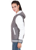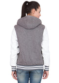 Women's Grey WOOL BODY HOOD VARSITY JACKET
