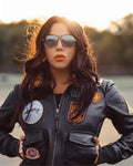 Women's MISS TG1 OFFICIAL Aviator Bomber Leather Jacket