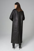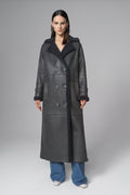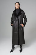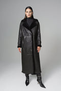 With a length that extends all the way down, this natural fur coat stands out with its sophisticated simplicity. Featuring two practical pockets and an elegant button closure, this women’s trench coat offers functionality and elegance in a flawless combination. It’s an essential piece of clothing that can easily be paired with any outfit and adds a touch of refinement to any look. With high-quality materials and attention to detail, this oversized trench coat is an investment in your personal style. The oversized shearling overcoat coat is available in gray and black colors. Our model is 175 cm tall, wearing size 36, and the product length is 124 cm