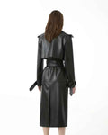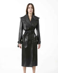 Women's Black Sheepskin Leather Fitted Trench Coat