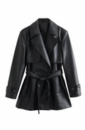 Featuring a sleek and versatile design, this coat is perfect for any occasion. Whether you're heading to a business meeting or a night out on the town, this coat will make a bold statement and elevate your look. Its short length adds a modern twist to the classic trench coat, making it a unique and stylish addition to your collection.