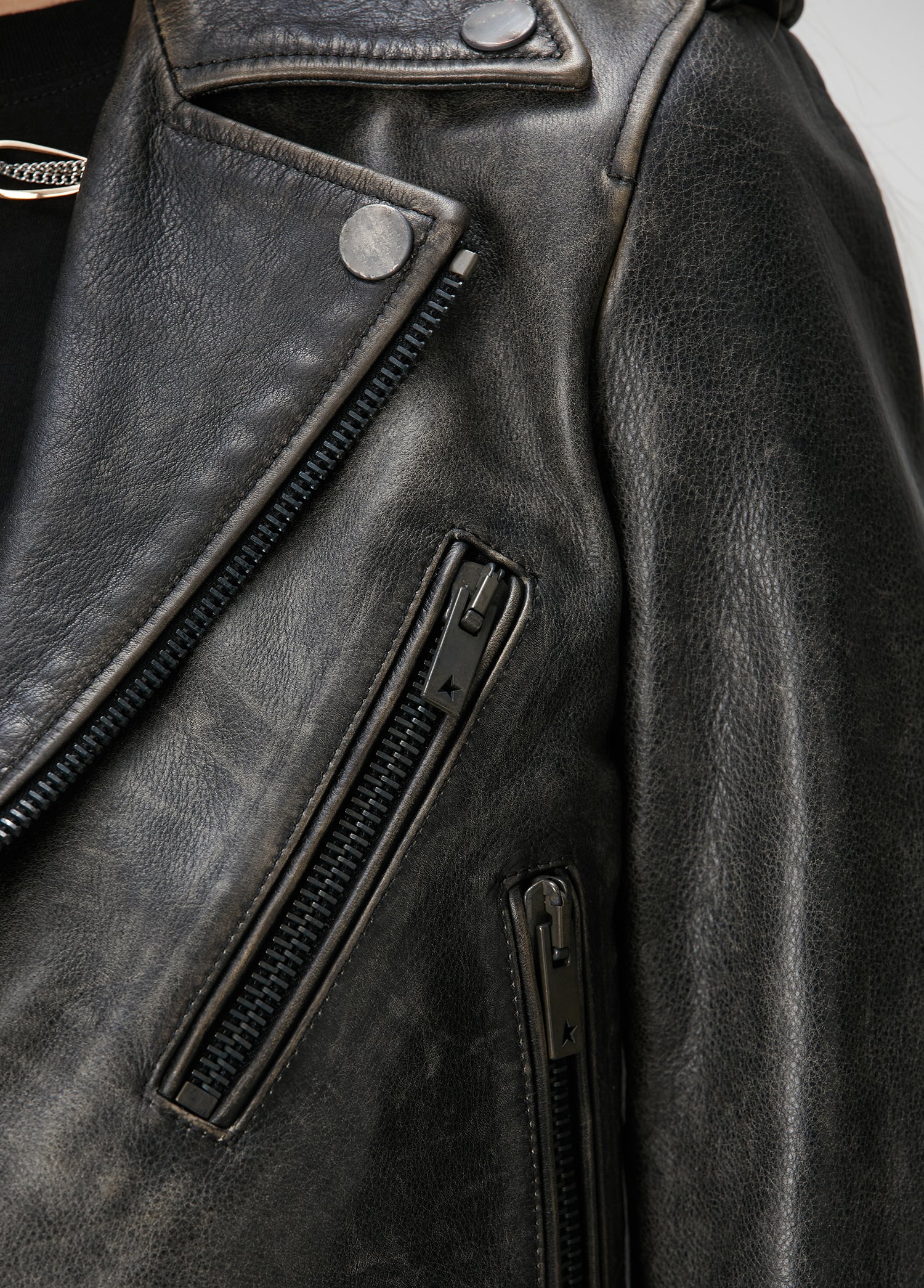 Women's Slim Fit Double Breasted Black Leather Biker Jacket
