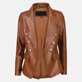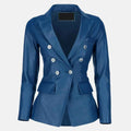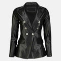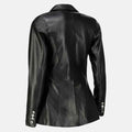 A notch collar and button cuffs are two of the features that make this leather blazer for women a perfect example of how traditional design can be updated with modern details. Additionally, the button cuffs give the design a contemporary edge, while the notch collar lends an air of elegance to the whole look. This leather blazer for women provides a generous amount of storage space for your things, because it is equipped with two pockets on the outside and two pockets on the inside. In the event that you need to transport your phone, keys, or any other small goods, there is plenty space available for you to store your stuff in an orderly manner and make them conveniently accessible.