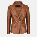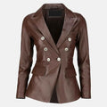 This trendy leather blazer women comes in maroon, brown, and brown nubuck to fit your taste. There are colors for any occasion, from strong to delicate. The Swelte Norma Leather Blazer Outfit is a trendy and classy item that can easily transition from day to night, and it will help you take your wardrobe to the next level with its use. Whether you are going to the workplace, going out to dinner with friends, or going to a special event, this leather blazer for women is the ideal option for any lady who is interested in being on the cutting edge of fashion.