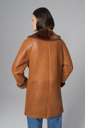 Discover authentic refinement and comfort with this lamb fur garment. With a deep collar and two practical pockets, this piece exudes simple and authentic elegance. High-quality materials and combinations of shades give the garment a subtle touch of refinement. The discreet single-button closure completes the design. Regardless of how you choose to pair it, this natural fur garment will add an extra touch of elegance and warmth to every outfit, making it a true investment in your style. The garment is available in cognac and brown colors. Our model is 175 cm tall, wearing size 36, and the product length is 85 cm.