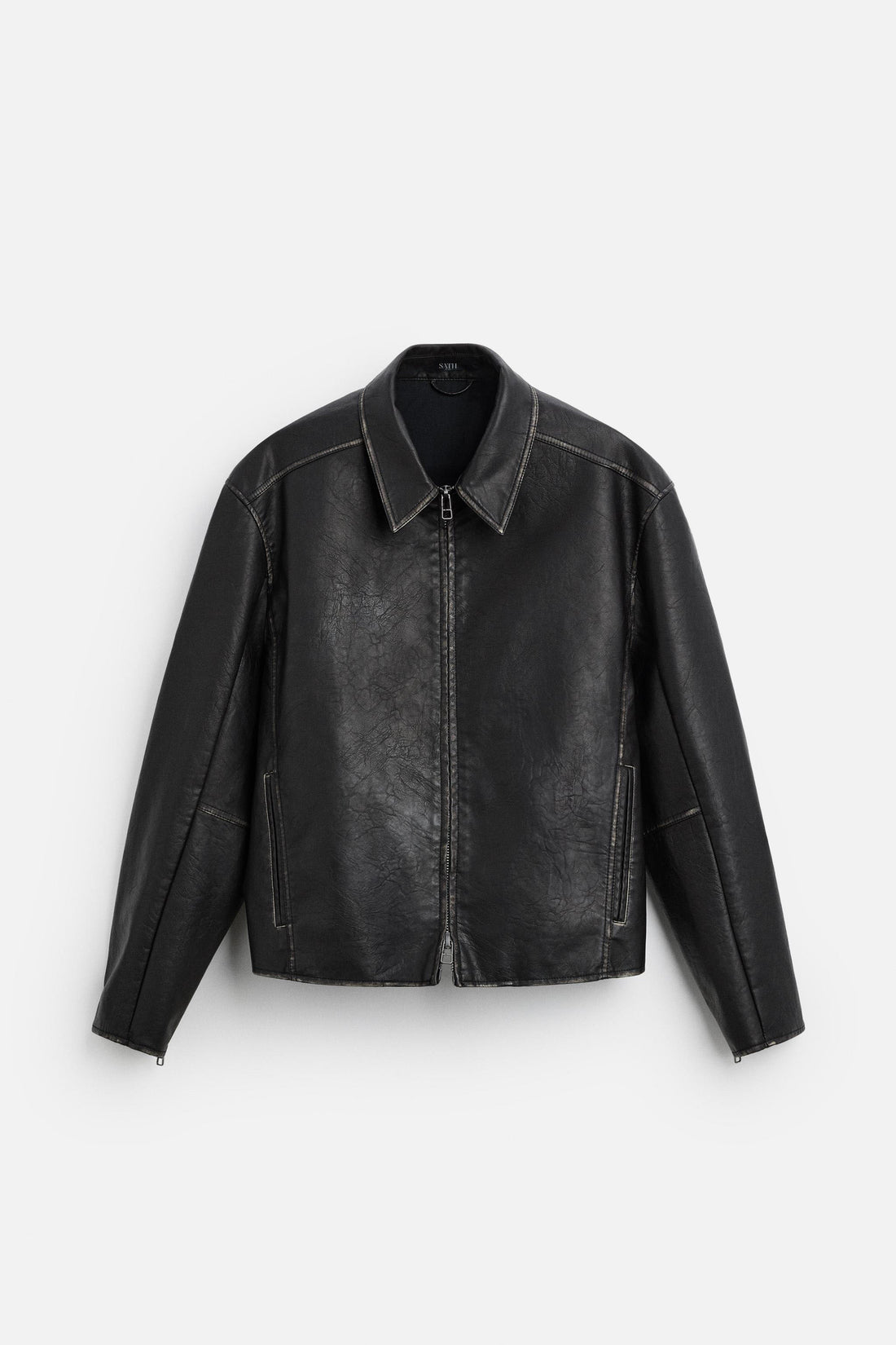 Regular fit jacket made of leather effect fabric. Lapel collar and long sleeves with buttoned...