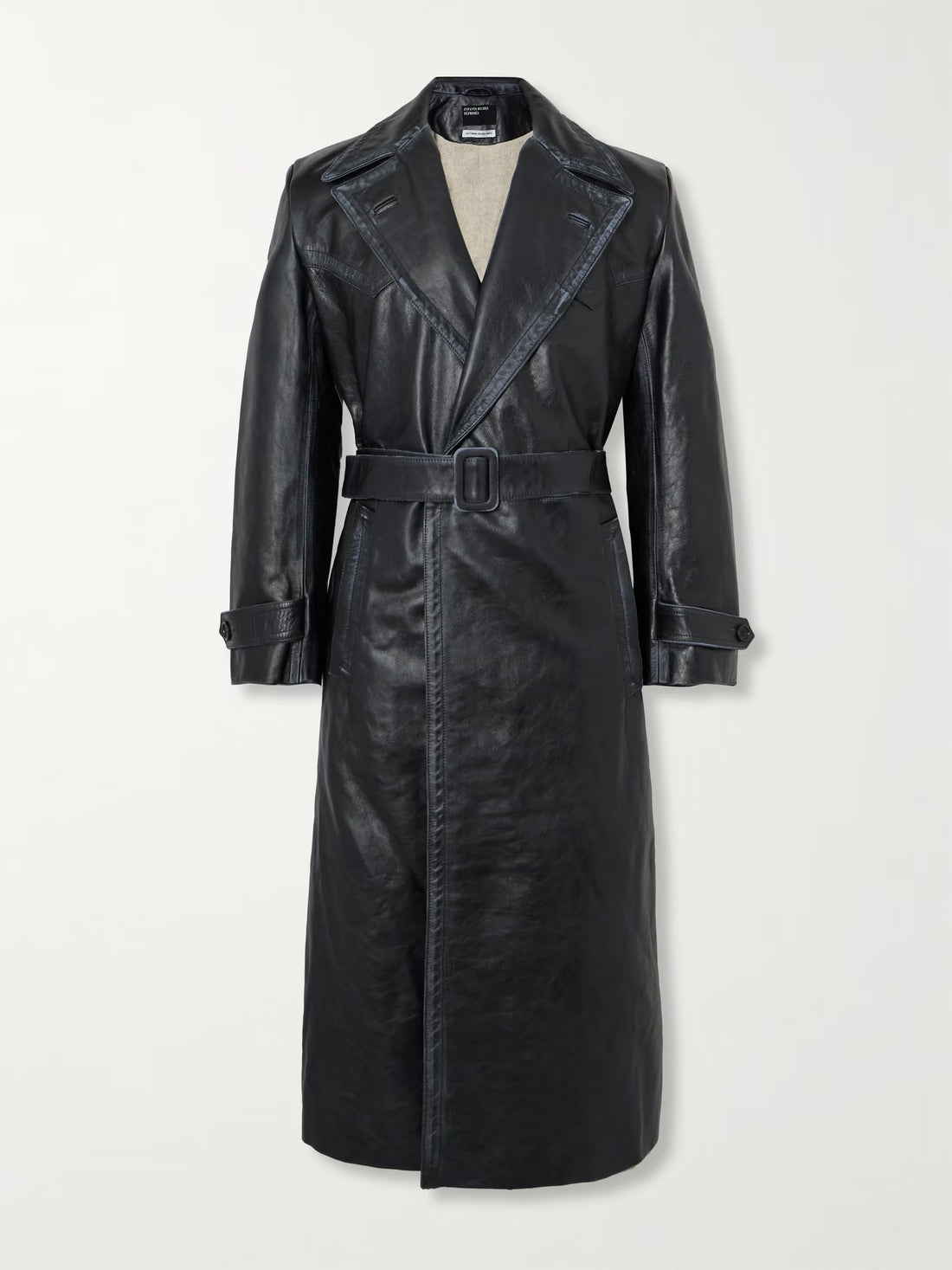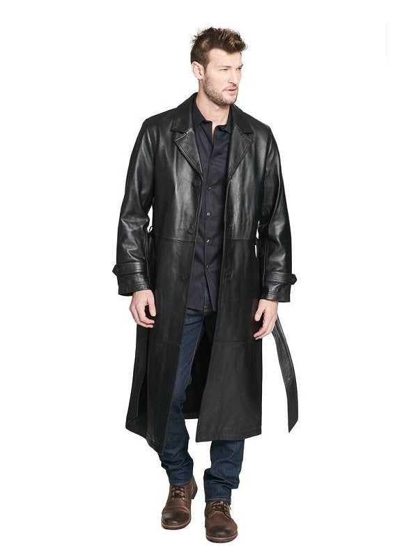 Men's Long Leather Trench Coat With Belt