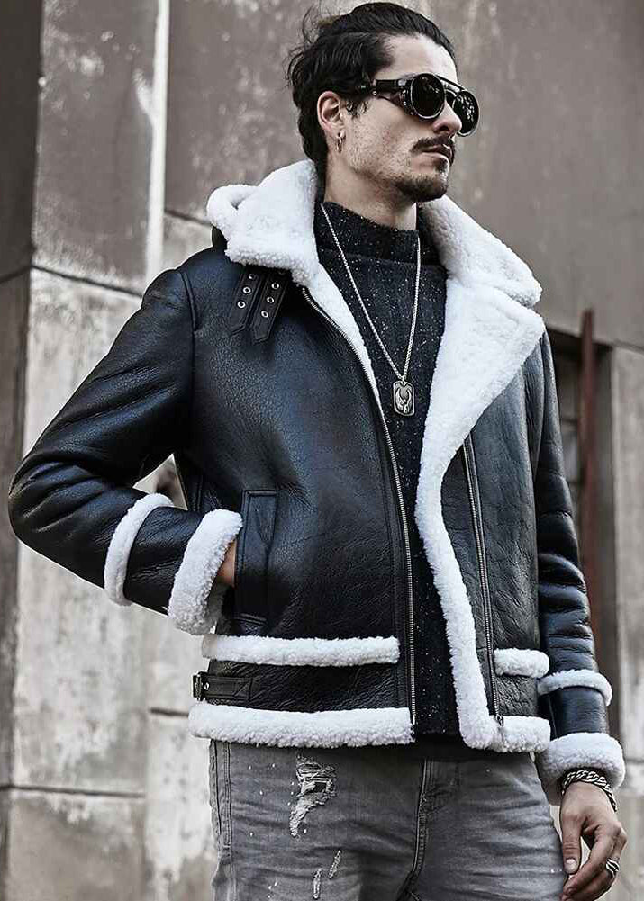 Men's B3 Fur & Shearling Leather Jacket in Black