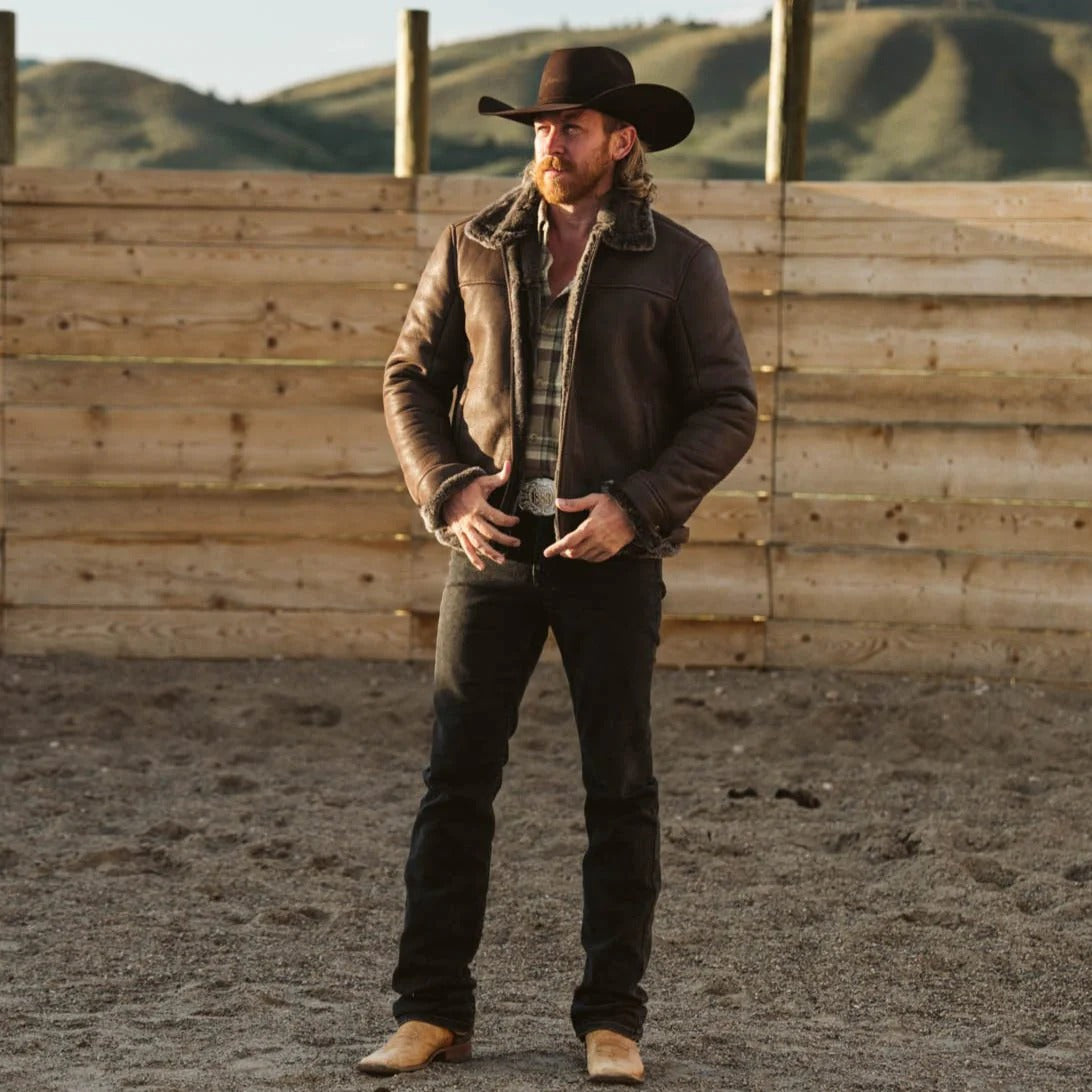 Men's Antique Cowhide Rancher Jacket with Sheepskin Collar