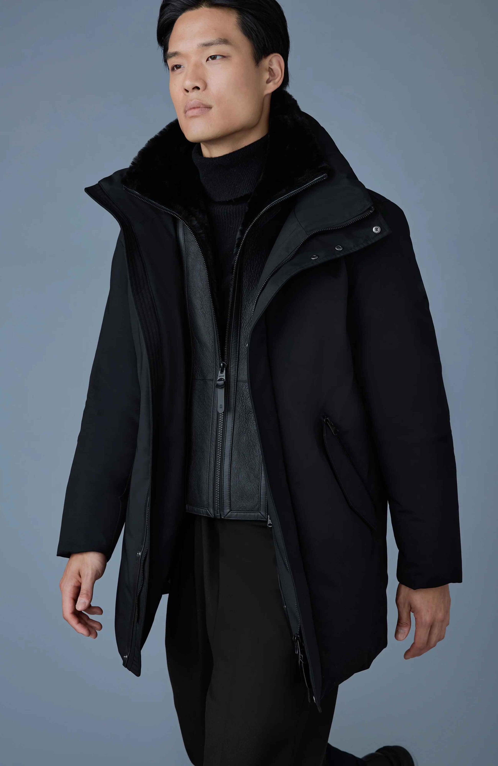 • Shell: 59% polyamide/nylon, 41% polyester. Lining: 100% polyamide/nylon. Combo lining: 100% leather. Filling: 90% duck down, 10% feathers. Water-repellent & Water-resistant.