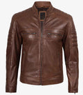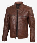 Discover style and comfort in the Austin Men's Cafe Racer Jacket. Made from real lambskin leather, features quality zip accents, multiple pockets, inside and out. With Shoulder padding design and rich finishing, this outerwear guarantees a flattering look.