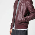 Men’s Burgundy Leather Bomber Jacket