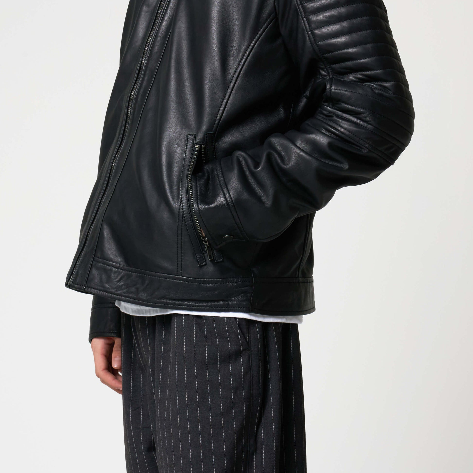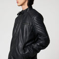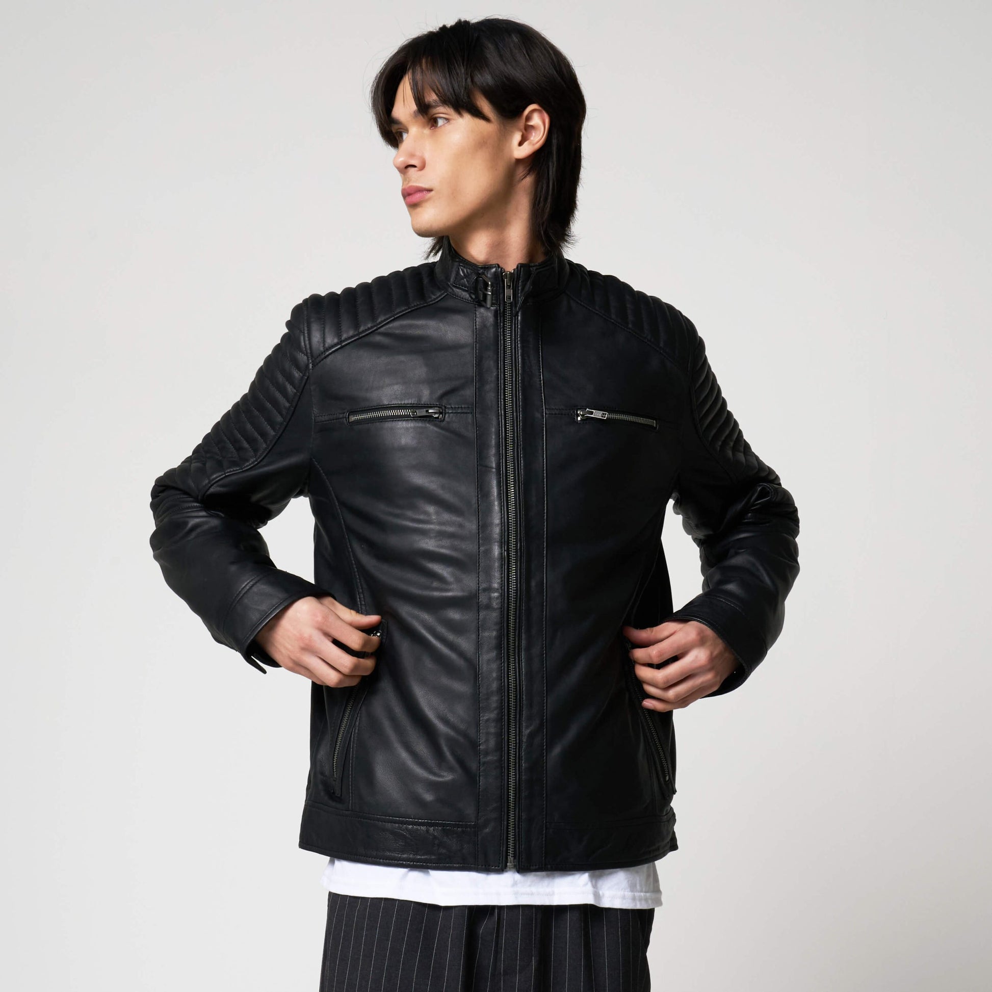 Men’s Leather Racer Jacket with Quilted Shoulders