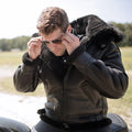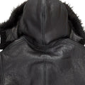 Men's All Black B-3 Hooded Sheepskin Leather Jacket