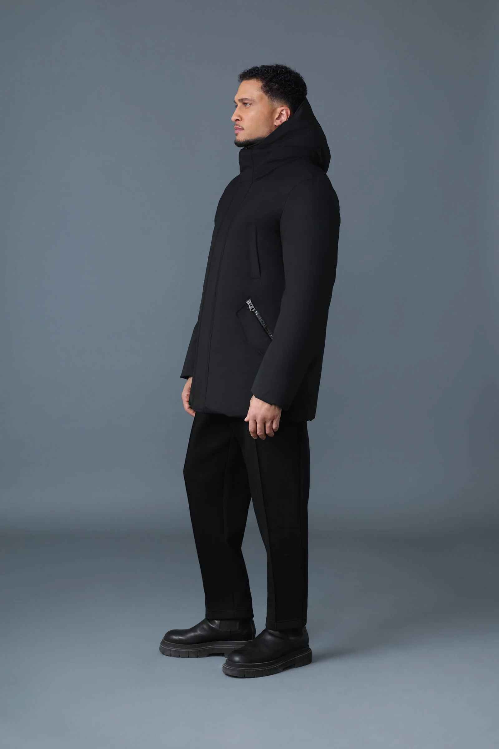 This is a down jacket for men with a removable hooded bib and a windproof shell cut from our breathable and air permeable 2-layer fabric. Engineered for maximum warmth in the most extreme temperatures, it boasts storm cuffs and insulated pockets. Cinch the drawcord for extra protection. An uncompromising performance-ready piece with utilitarian detail.
