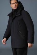 Men's Black Hooded Storm Cuffs Regular Fit Down Jacket