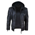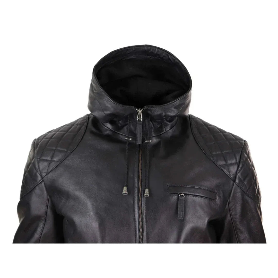 Men's Genuine Leather Hooded Zipped Biker Jacket