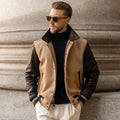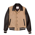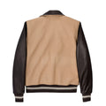 The SATH men's Classic Varsity style jacket features the pointed collar style found on many vintage styles adding to the clean classic lines. Like most varsity styles, the tan and brown leather Classic Varsity jacket also features a light quilted lining. This style has a front zip and snap closure for extra warmth. Available in tan wool and leather brown sleeves, this letterman's jacket is left as a blank canvas to be worn as a clean and fitted casual jacket, or can be adorned as the heart desires! This signature piece is finely crafted here in our factory proudly manufactured in the USA where the Varsity Style began.