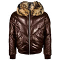 Men's Dark Brown V-Bomber Leather Jacket With Raccoon Fur Collar