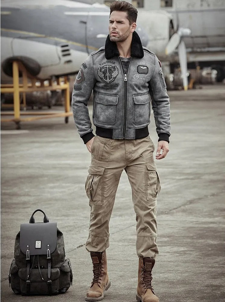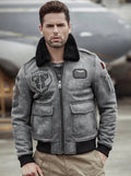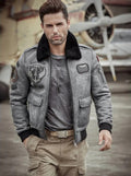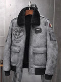 Men's Fur & Shearling Sheepskin Leather Jacket in Grey