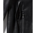 Design Details: Split Mandarin collar. Contrast piecing. Embossed leather shoulder detail.