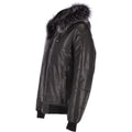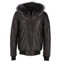 Men's Hooded Bomber Leather Jacket Black