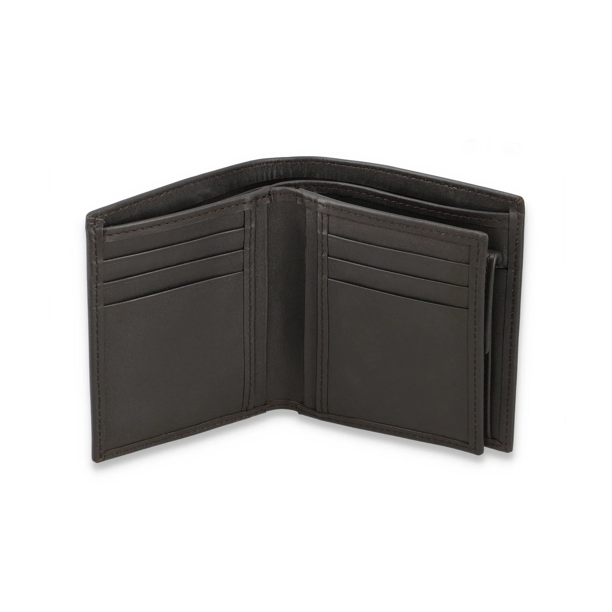 Men's Leather Wallet in Black and Brown with Six Card Slots