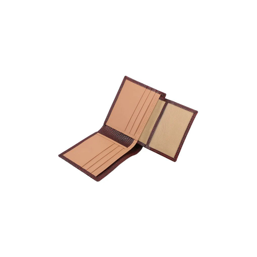 Our lizard embossed leather adds zest to our classic design which comfortably holds six credit cards and cash.