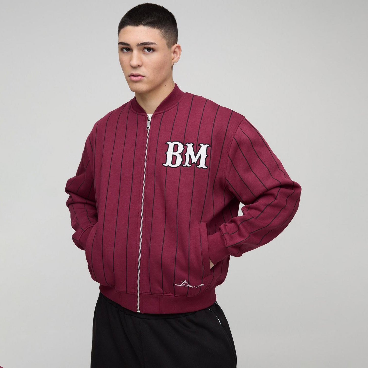 Men's Oversized Pinstripe Varsity Jacket Bomber Style