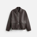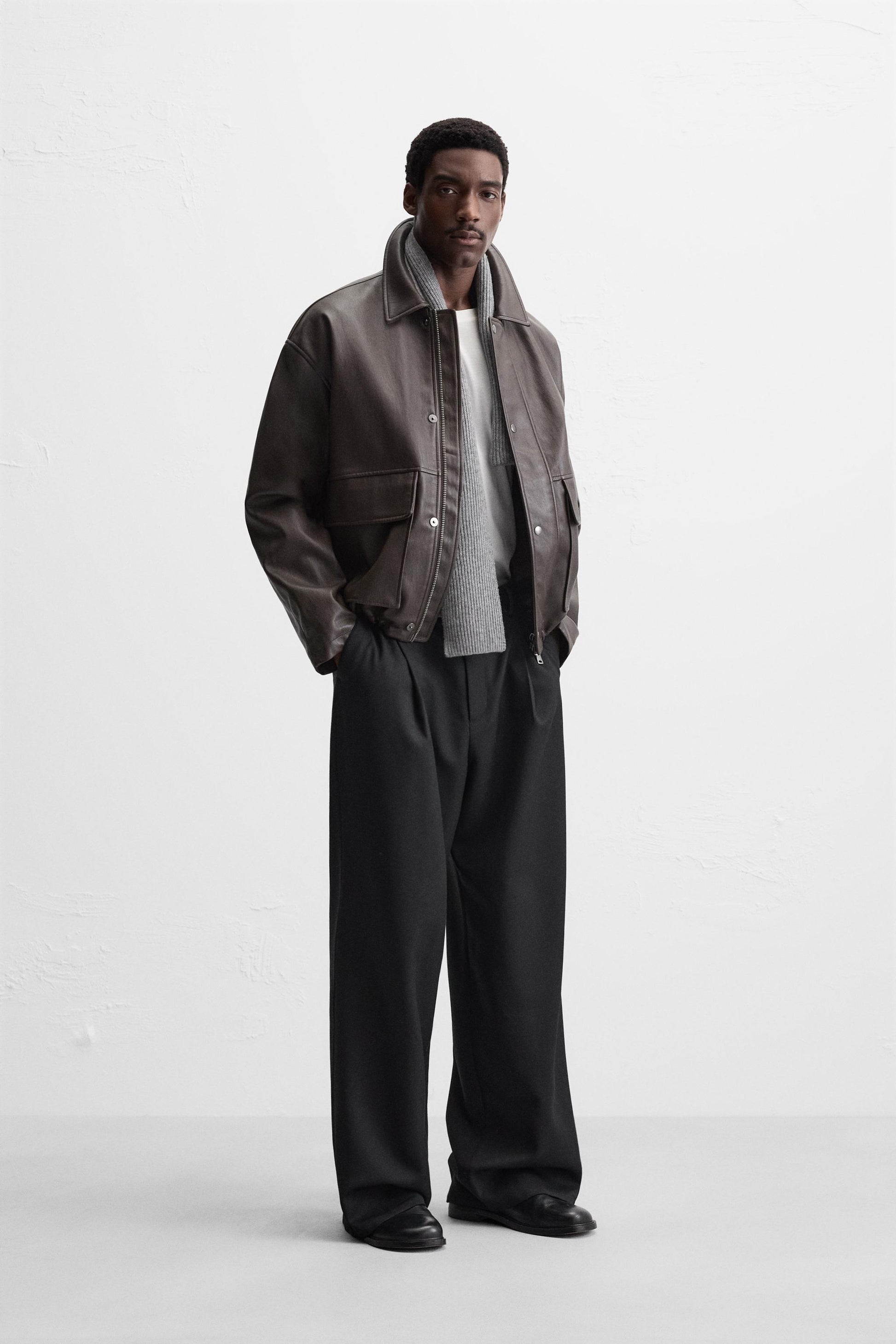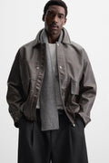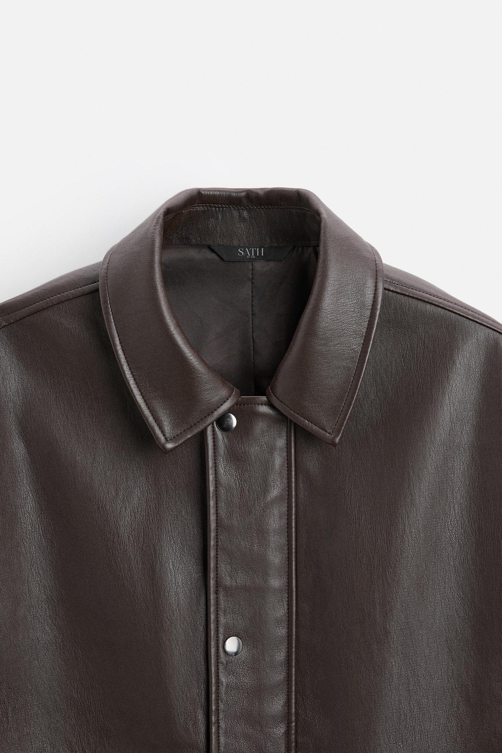 - Relaxed fit jacket in a leather-effect fabric.