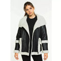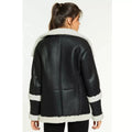 Women’s Black Big Fur Collar One inner Pocket Leather White Shearling Fur Coat