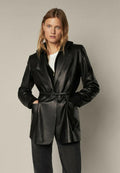 Women’s Classic Black Oversized Fit Leather Short Trench Coat