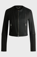 Women's Black Slim Fit Collarless Leather Jacket