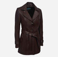Elevate your fashion game with our Ladies Leather Trench Coat, a striking blend of elegance and edge. This ladies long jacket with belt is crafted from the finest soft lamb napa leather, its lapel collar and front button fastening exude timeless charm, while the waist belt ensures a flattering, slim fit. This coat is a versatile fashion essential, perfect for making a statement on city streets or at special events. Experience the luxury of premium leather and embrace enduring style that will set you apart.