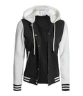 Women's Black and White Hooded Varsity Jacket - Baseball Style