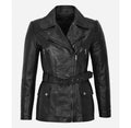 Women's Black ANGELINE Mid Length Leather Short Trench Coat