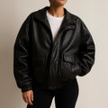 Make a bold style statement with our Oversized Leather Jacket for Women, handcrafted from 100% pure leather for an unmatched combination of luxury, durability, and edgy fashion. This premium-quality jacket channels timeless vintage aviator vibes with a modern oversized silhouette, making it the perfect layering piece for fall and winter.