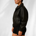 Designed for comfort and impact, the soft interior lining ensures warmth, while the relaxed fit and bomber cut give it an effortlessly cool look. Whether you're styling it with jeans, leggings, or boots, this leather jacket will instantly elevate your streetwear game.