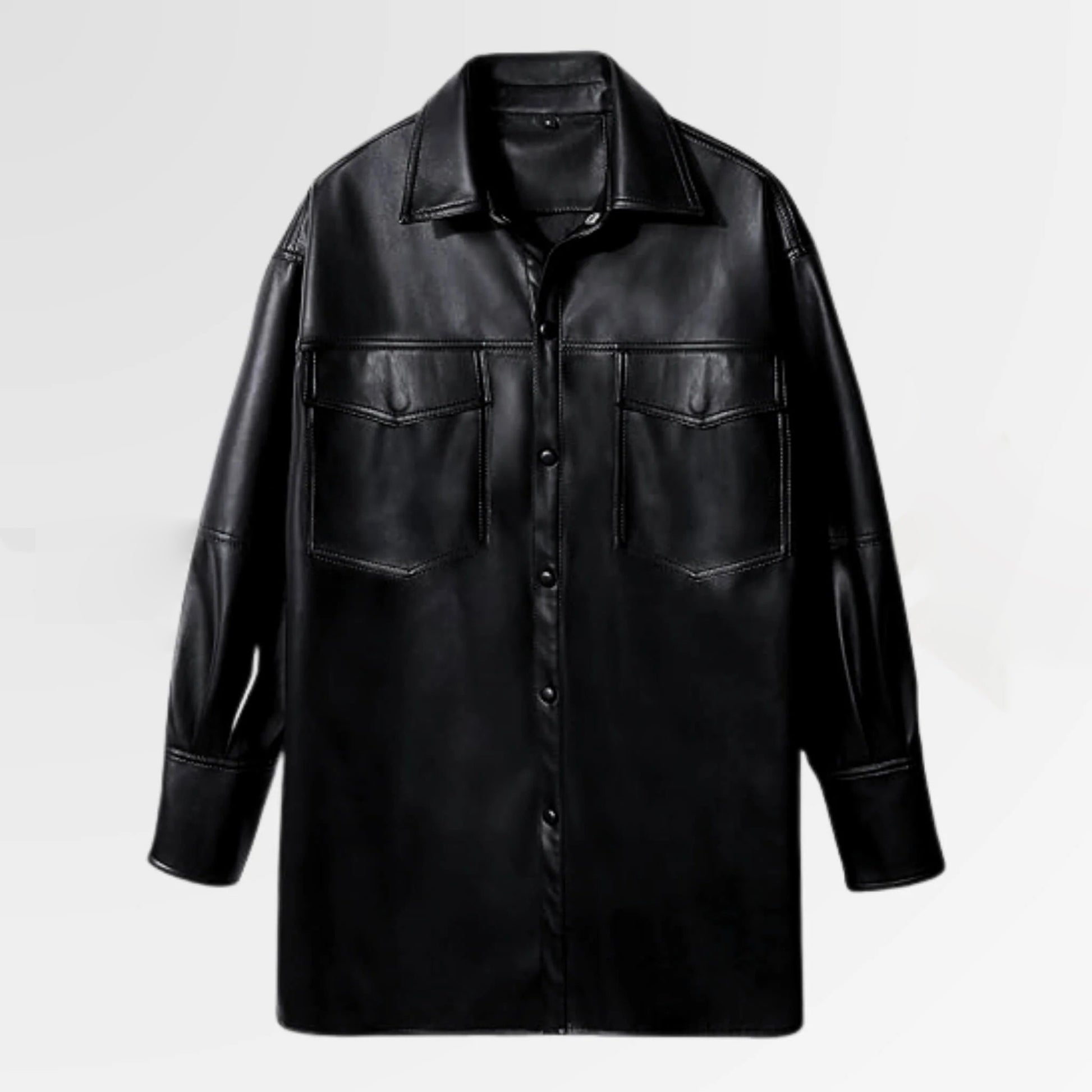 Introducing our Long Leather Shirt — a versatile and on-trend wardrobe essential. Crafted from genuine leather, this leather shirt features a longer length for added style. With a chic fusion of a shirt and jacket, it offers a perfect balance of comfort and contemporary fashion. Elevate your look with this modern piece that effortlessly transitions from casual to chic.