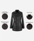 Women's Black PARIS 3/4 Length Leather Short Trench Coat