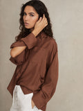 The Reenie shirt is a relaxed yet refined style, crafted from luxurious silk for a soft silhouette and fluid drape. Buttons along the blouson sleeves allow for customizable styling.