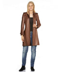 Women's Brown Adjustable Buckle Leather Trench Coat