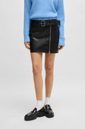 Women's Faux-Leather Regular-fit Mini Skirt with Belt