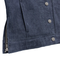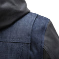 The Holli jacket is a perfect pairing of style and functionality. Featuring our rough neck raw denim body, a leather hood, and full grain leather sleeves, it gives the illusion of wearing a leather jacket under a denim vest without the extra bulk. It also comes with armor pockets for added protection while you're riding your motorcycle.