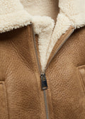Women's Beige Leather-Effect Fur Shearling Jacket