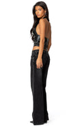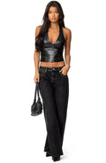 Make the scene in a '70s-inspired halter top cut from glossy faux leather with all the supple swagger of the real deal.