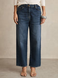 These Light Blue jeans are cut for a modern flare and are elevated by two patch pockets at the front. Subtle pintucks from waist to hem elongate the leg, whilst faded patches create a more casual edge.