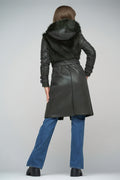 A warm, durable and unique coat. Essential in any woman’s wardrobe, the merino sheepskin coat and the Tuscan sheepskin coat perfectly match both the casual style and an occasional outfit. The elegant note of the dress is represented by its drawstring, which makes your waist perfect. The closure is made with a zipper. The lambskin coat is provided with two pockets, but also a hood that offers extra protection against frost. The coat is available in two colors – olive and black. The length is 100 cm.