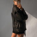 Women's Black Classic Oversized Biker Sheepskin Leather Jacket