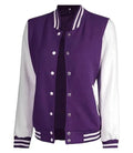Women's Purple and White Varsity Letterman Jacket - Bomber Style